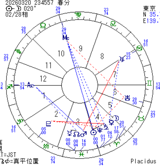 今日は春分ですね。3月20日23時46分、太陽がおひつじ座0度に入ります。宇宙の時計で、新しい一年が動き出します。春分図は、この一年のテーマを映し出します。そこで、「今年の日本」について読み解いてみたいと思います。